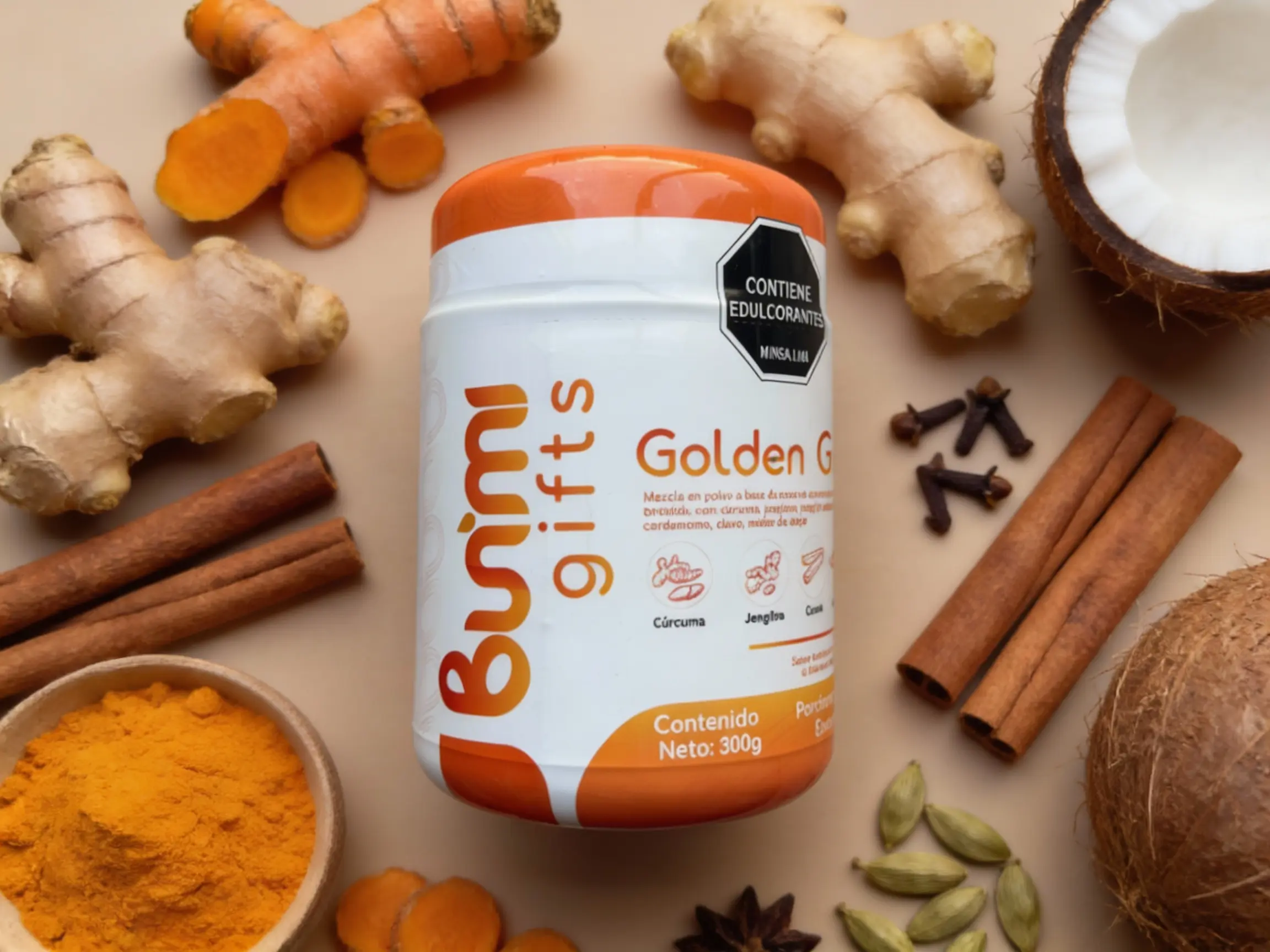 Golden Gift es una mezcla natural cuidadosamente formulada para apoyar tu digestión y bienestar intestinal de forma diaria. Combina ingredientes funcionales como cúrcuma, jengibre, melena de león y especias naturales, endulzado con Monk Fruit y un delicioso sabor natural a maracuyá.